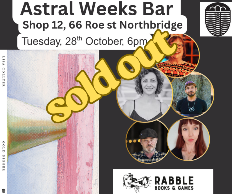 Join us in the groovy ambience of Astral Weeks Bar as Gold Digger is co-launched by Dr Bron Bateman and Scott-Patrick Mitchell. Alan Fyfe will be hosting the evening and there will be poetry readings from Kerry Greer.